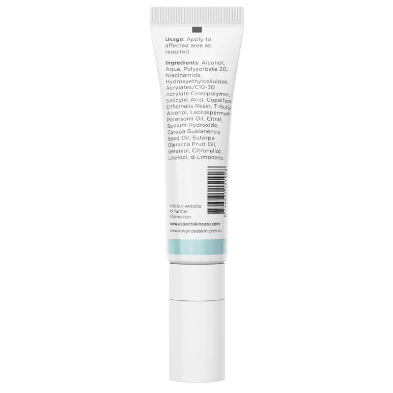 Aspect Stop Spot is a fast-acting spot treatment designed to target and reduce individual blemishes without over-drying the skin. This powerful formula combines proven acne-fighting ingredients with soothing botanicals to calm redness and inflammation while promoting clearer skin. Ideal for those occasional breakouts or flare-ups, it provides on-the-spot care that works quickly and effectively.