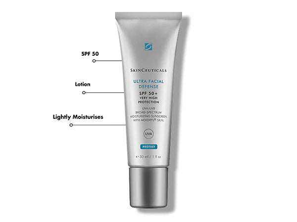 SkinCeuticals Ultra Facial Defense Sunscreen SPF50 (30ml) is a lightweight, ultra-moisturising broad-spectrum facial sunscreen providing very high protection against UVA/UVB rays. Formulated with advanced UV filters to help prevent sun-induced skin damage and premature signs of ageing.