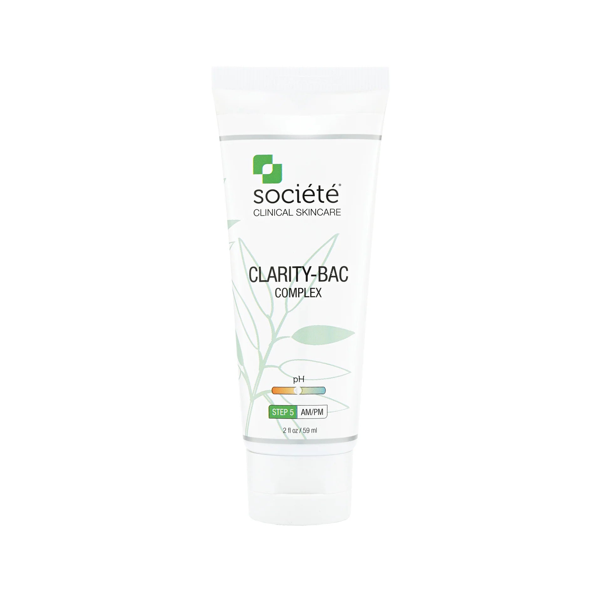 Société Clarity-Bac is an oil-free, lightweight clarifying cream developed to promote clearer, smoother skin. Ideal for those struggling with red, rough, and blemish-prone skin, this daily treatment helps restore skin balance while creating a breathable protective barrier. A targeted peptide Booster Complex supports skin clarity, while antioxidants and humectants provide hydration and defence against environmental stressors.