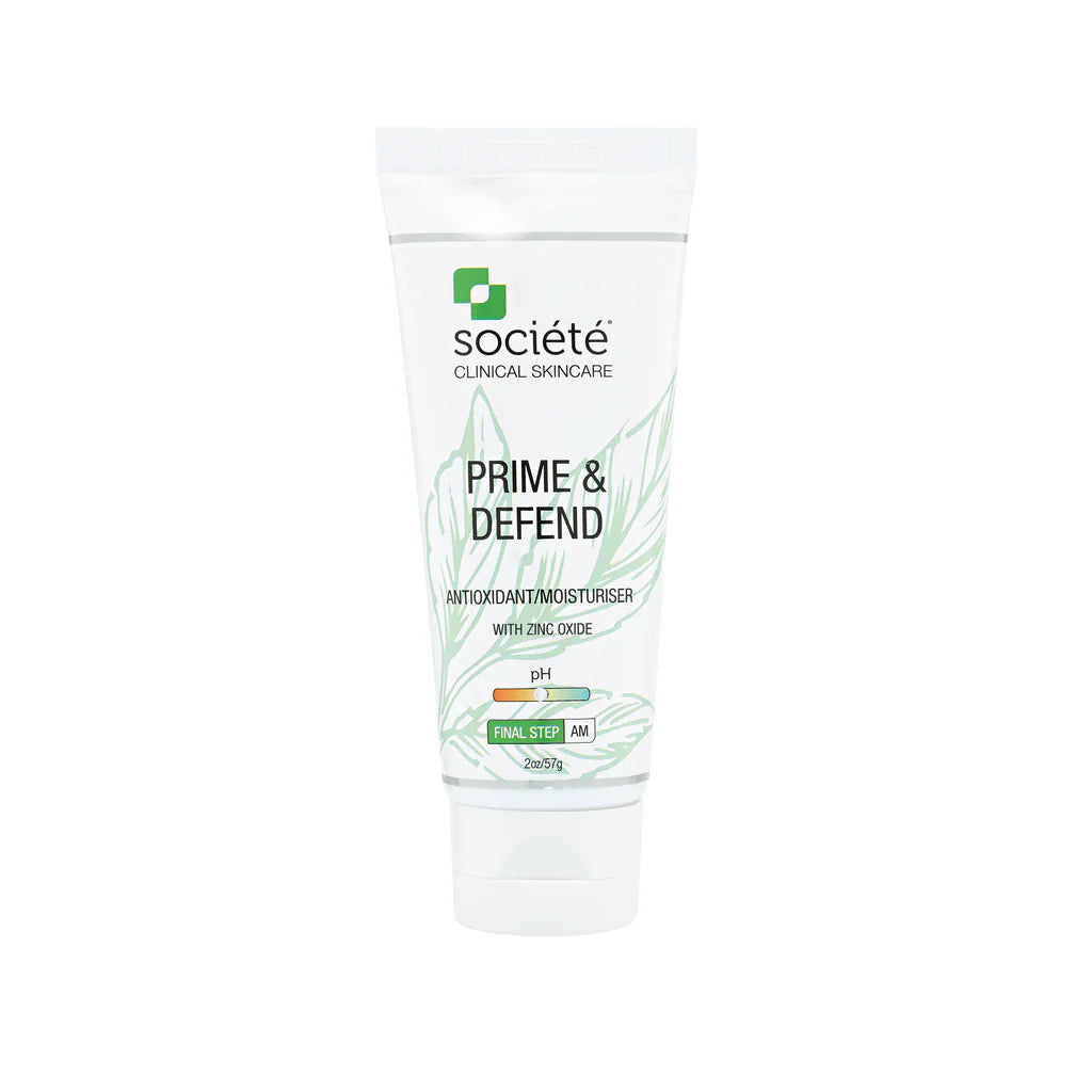 Société Prime and Defend is a breathable, multi-functional makeup primer designed to protect and smooth the skin. Formulated with zinc and green tea, this non-comedogenic, non-greasy, and non-sticky primer forms an invisible barrier on the skin, offering environmental protection while prepping the skin for makeup. Ideal for sensitive, reactive, or post-procedure skin.