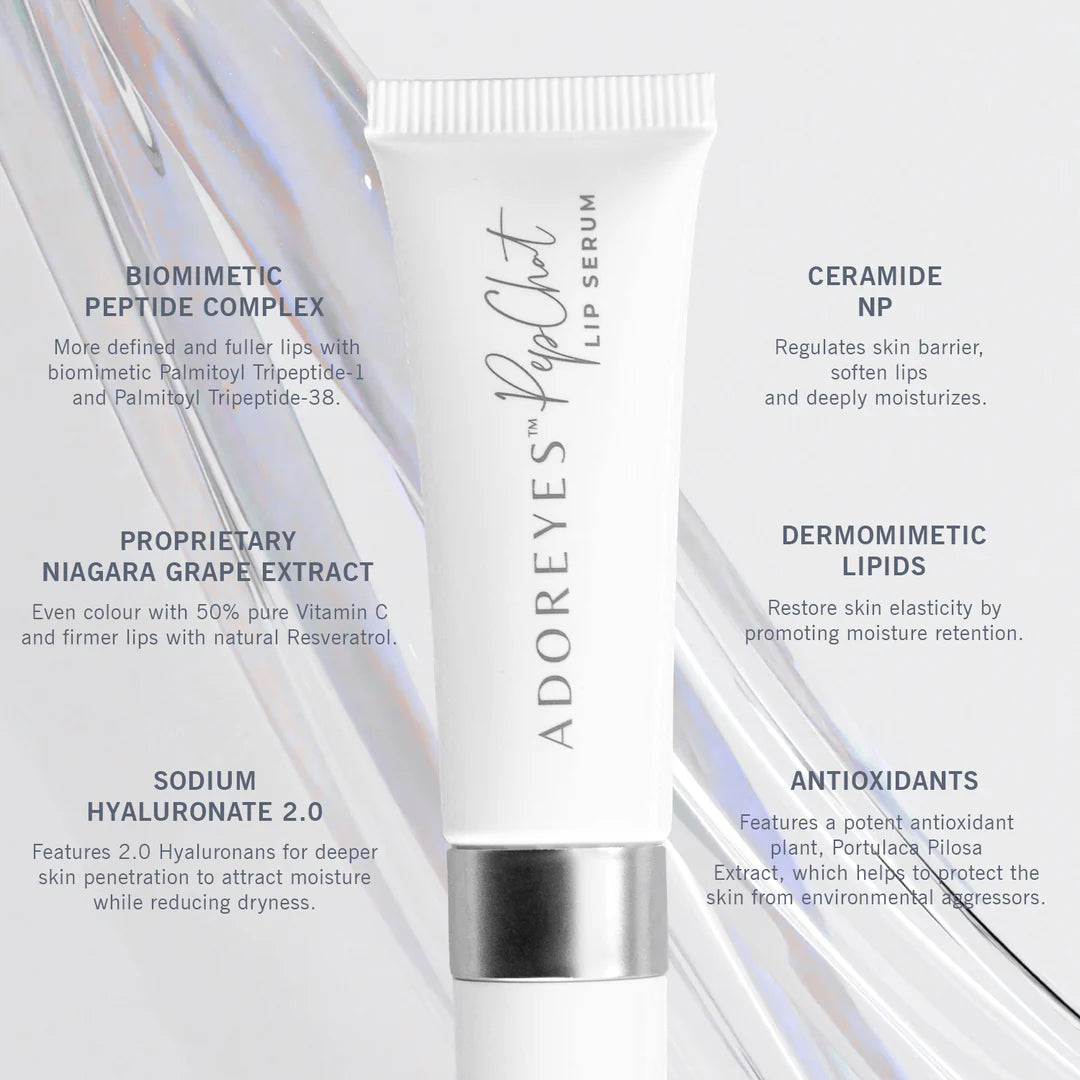 ADOREYES PepChat Lip Serum features a scientifically advanced formula with Biomimetic Lip Complex and deep penetration technology to combat dryness and visible signs of lip volume loss.