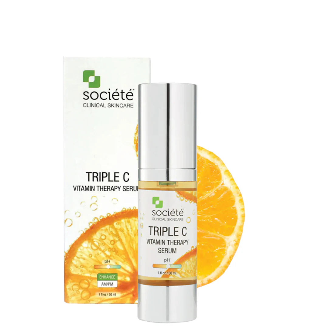 Société Triple C is a groundbreaking antioxidant serum formulated with a powerful blend of three stabilised forms of Vitamin C—Sodium Ascorbyl Phosphate, Ascorbyl Glucoside, and Magnesium Ascorbyl Phosphate. Designed to deliver maximum skin-brightening, collagen-supporting, and protective benefits with minimal irritation, this serum penetrates deeply for lasting results throughout the day.