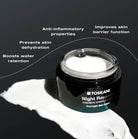 Restores and protects damaged skin Supports hydration and elasticity Boosts barrier function and prevents dehydration Soothes and rejuvenates overnight